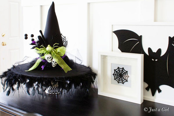 This fun project by Cheryl over at TidyMom is very easy. All you need is a witch hat and some extra tidbits to decorate it. Whether you want to use it to decorate your room or as a centrepiece for your party table, this project is not only super easy to make but it's also very pretty. Click here for the full tutorial.